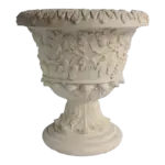 The French Urn balances delicate, ornate dimensional leaf works with a grandiose classical urn shape with a solid base for unmatched beauty. Transform your backyard into a timeless retreat with this beauty. Made by our artisan of cast limestone to last for generations. Drainage hole can be drilled free of charge. Please specify when ordering.