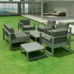 4 DS-1001 Lucca Deep Seating Armchair1 DS-1007 Lucca Rectangular Coffee Table1 DS-1004 Lucca Deep Seating Right Loveseat1 DS-1006 Lucca Side Table2 mm thick Aluminum Frame with High Quality Powder CoatingFinishing: Grey 170 Grit Powder CoatingNo Assemble RequiredInner cushion is made of foam with a Dacron wrap. Total thickness is 6"Sunbrella Cushion includedSeat High without cushion is 11' and with cushion is 17"QuickShip Cushions available in Natural, Burgandy, JockeyRed, Teak, Navy, Linnen Antique Beige, Linen Champagne, & Forest GreenCustom Order Cushions available in 36 colors from Sunbrella