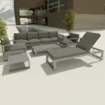 Add a modern vibe to your pool and patio with the Lucca 7-Piece Set. Includes a deep seating set that seats up to six with a rectangular cofee table, it also features a single sun lounger with an ottoman. Machine crafted from dry powder-coated aluminum in grit grey hue ensures a lightweight but durable piece of craftsmanship fit for outdoor use. Cushions for Lounger sold separately.