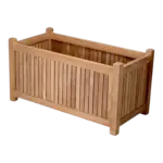 This Planter box is the perfect complement to your patio and gardening needs. Built from solid teak wood finished in a waterbased coat, it's a simple, beautiful yet classy design. This 36_ by 18_ rectangular planter box can be left indefinitely outside withstanding any type of weathering from rain, hail, wind, or shine eventually turning into a mellow grey.A strong, sturdy and heavy base guarantees the support needed for plants to grow.Pot liner not included. Can be used for indoor gardening as well.
