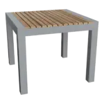 Enjoy an outdoor lunch and coffee with the Seville Square Dining Table. Constructed from aluminum metal and authentic unfinished teak, this table is sure to add a modern vibe to any dcor. Sleek, sturdy, and quality built, this modern table is the perfect piece for extended patio use and weathering. Add additional chairs from the Seville Collection to create your own outdoor dining set.