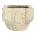 The Tiffany Planter features detailed relief works that will take you back to ancient history. Its ornate rectangular shape will complement any dcor. Perfect for balcony, smaller backyards or indoors use for instant elegance. Created by our artisan of cast limestone to last for generations. Adds a remarkable artistic touch celebrating a culture of time rich in tradition. This handsome planter plays an interesting role with style to showcase vibrant floral or greenery outdoors. Drainage hole can be drilled free of charge. Please specify when ordering.